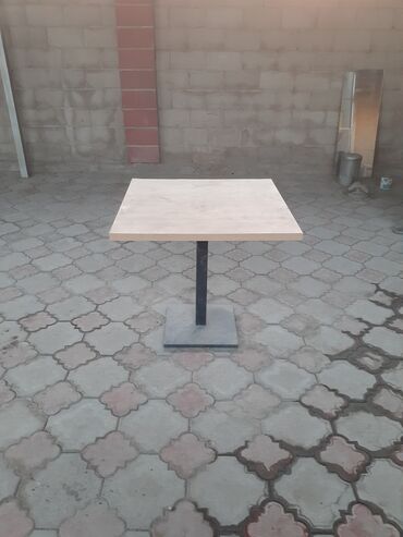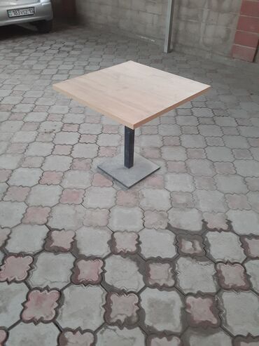 Квадратный стол на центральной опоре - Столешница: массив/щит дерева с выраженной текстурой, натуральный теплый оттенок; прямые кромки, толщина ориентировочно 25–30 мм. Доски уложены продольно, по...