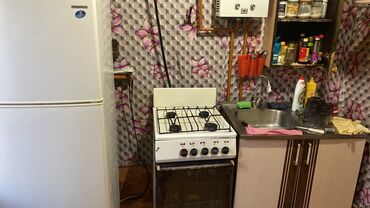 В квартире остаются: кухонный гарнитур с мойкой, газовая плита с духовкой, холодильник, открытые стеллажи/полки, часть мебели по фото.