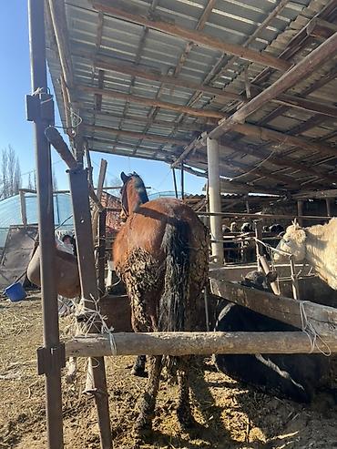 Бээ 5 жаш бооз колу буту соо ден соолугу чын жоош ! Лошадь (масть гнедая), вероятно кобыла, на привязи. Крепкий костяк, широкая грудь, выраженная мускулатура крупа. Конечности ровные, копыта т...