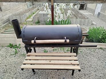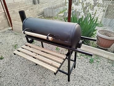 - Корпус: цилиндрическая жаровня с откидной крышкой на петлях.