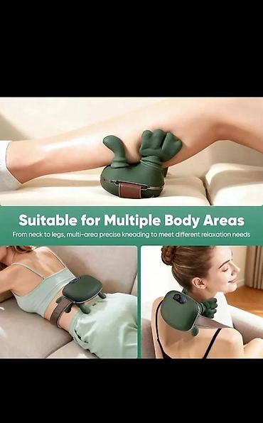 Компактный электрический массажер для точечного разминания мышц шеи, плеч, спины, поясницы и ног. Подходит для использования дома, в офисе и в поездках.