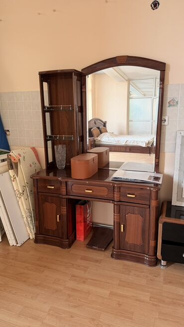 - Туалетный столик/трюмо с большим зеркалом в арочной раме.