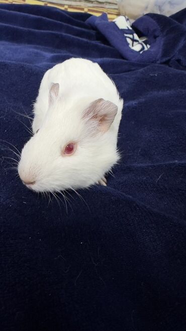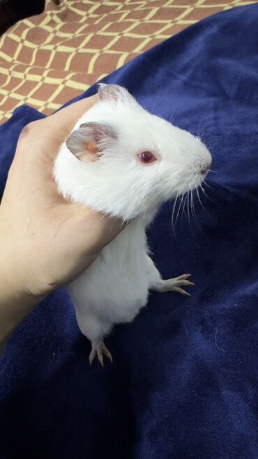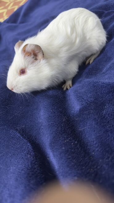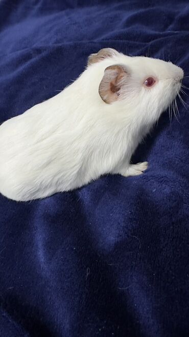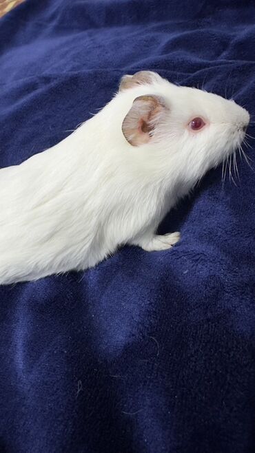Молодая морская свинка, окрас: белый, глаза рубиновые. Короткошёрстная, компактная, с аккуратными ушками. Альбинос . Родилась 16 октября. Девочка .