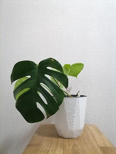 В комплекте: растение монстера делициоза в белом кашпо с внутренним горшком.