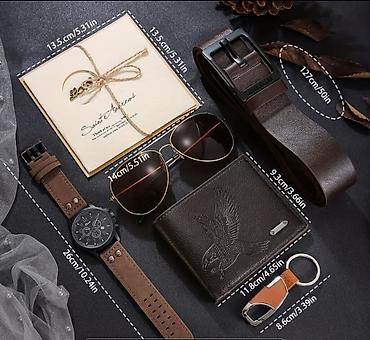 Стиль набора — классический и повседневный: сочетаемые коричневые оттенки, практичные аксессуары на каждый день. Подходит как готовое решение для подарка ко Дню святого Валентина, 23 февраля и другим датам.