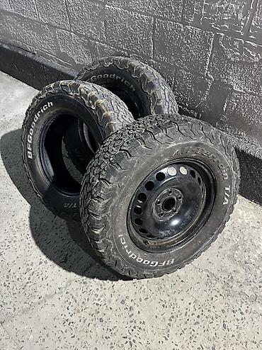 Комплект из 3 внедорожных колес BFGoodrich All‑Terrain T/A на стальных дисках.