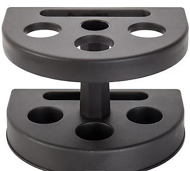 - Компактная двухъярусная подставка-органайзер с отверстиями под каждую щетку и прорезями для расчески/зеркала — удобное хранение на столе или полке.