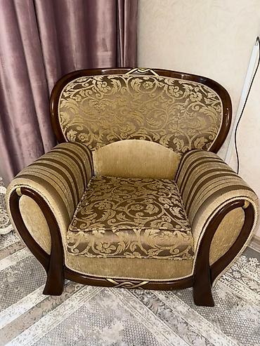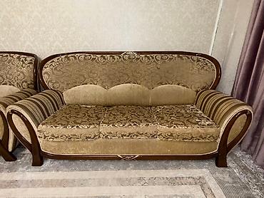 Мягкая мебель: комплект из дивана и кресла-кровати в едином стиле. - Конфигурация: трехместный диван + кресло, оба с раскладным механизмом трансформации в спальные места. - Тип механизма: выкатной...