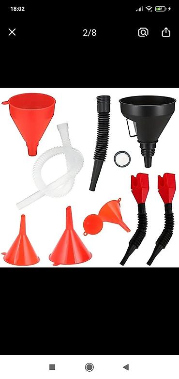Набор масляных воронок 8 шт. с воронками от малого к большому размеру, длинным горлышком и гибкой конструкцией под прямой угол для бензина, охлаждающей жидкости и моторного масла. В наборе 7 различных спецификаций.