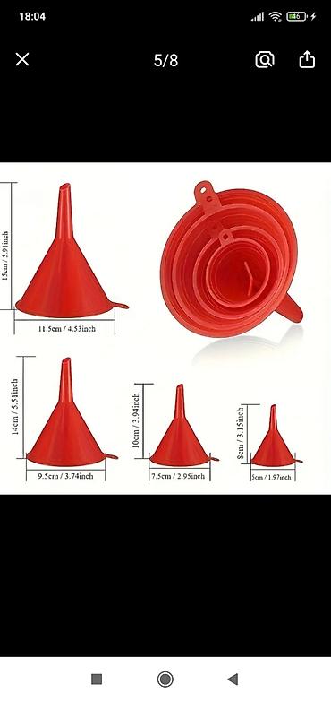 - Красные воронки разных размеров (5 шт) с ушком для подвеса