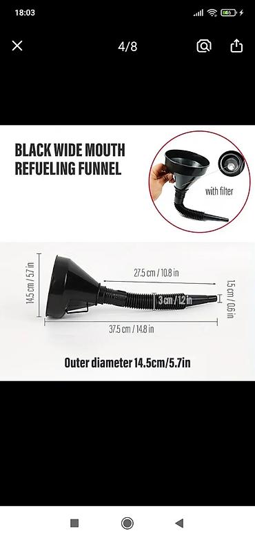 - Большая черная воронка с ручкой и сменным телескопическим гофрошлангом