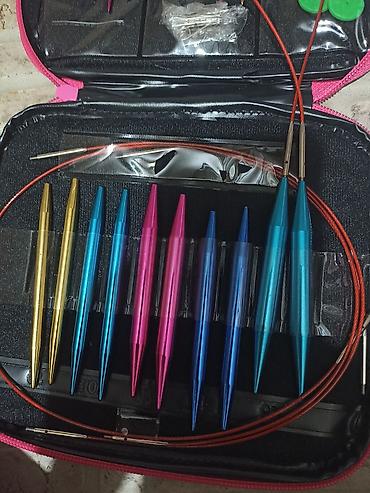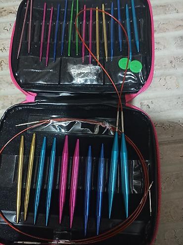 Новый Набор сменных круговых спиц в футляре Брала за 5500 отдаю за 4000 сом - Полный комплект разноцветных алюминиевых наконечников с резьбой для присоединения к лескам. - Диапазон размеров: прим...