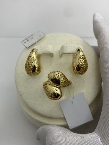 - Кольцо: двухъярусный волнообразный дизайн с ажурными акцентами; регулируемый/масивный силуэт.