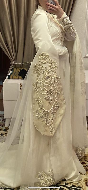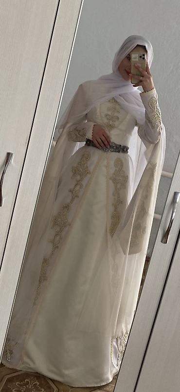 Идеально для никяха, традиционной свадьбы, торжественных выходов и фотосессий. Богатая отделка, выразительный шлейф и аутентичные элементы подчеркивают национальный колорит и элегантность образа.