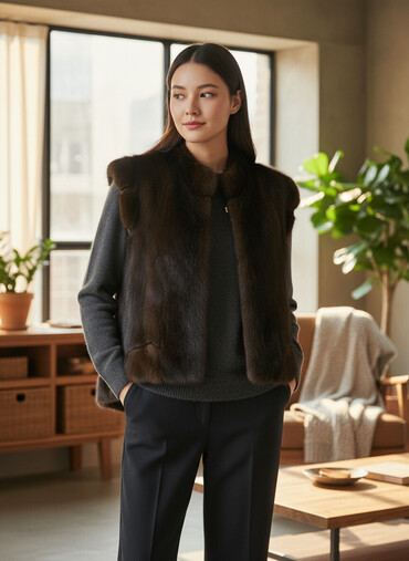 Меховая жилетка натуралка размер xl подойдём на с,м цвет графит