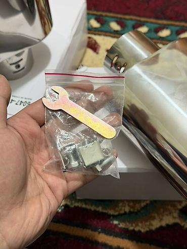 Насадка на выхлопную трубу автомобиля из нержавеющей стали. Имеет длину 10 см и диаметр входного отверстия 6.2 см. Установка осуществляется с помощью болтов, обеспечивая надежное крепление. Подходи...