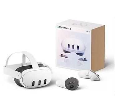 Meta Quest 3 — автономная гарнитура виртуальной и смешанной реальности. Комплектация на фото: - гарнитура Meta Quest 3 - два контроллера Touch с аналоговыми стиками и кнопками A/B/системной - огол...