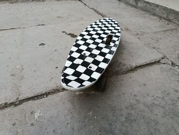 - Дека из прочного пластика с рельефным противоскользящим покрытием в шахматном принте (чёрно-белый).