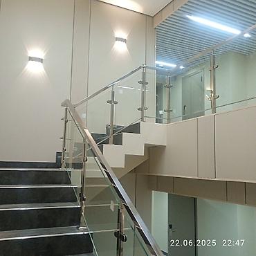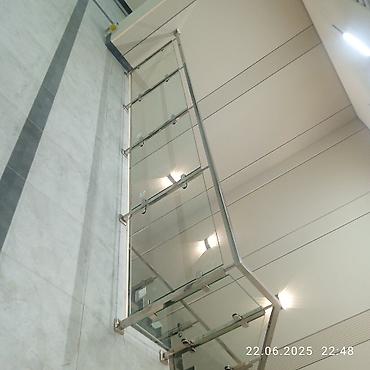 - Материалы: нержавеющая сталь (полированный/сатинированный прокат), стекло закалённое/триплекс, точечные крепления и стойки из нержавейки.