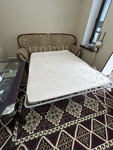 Раскладной диван-кровать с двумя подушками СОСТОЯНИЕ ОТЛИЧНОЕ - Тип: прямой диван с механизмом трансформации (выкатной/подиумный с петлями для вытягивания). - Спальное место: полноценное, образует...