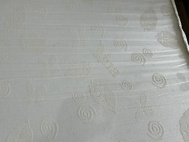 Раскладной диван-кровать с механизмом выкатного типа. - Трехместный диван с высоким фигурным спинным блоком и мягкими подлокотниками. - Обивка: ткань бежевого цвета с волнообразным тиснением. - Ме...