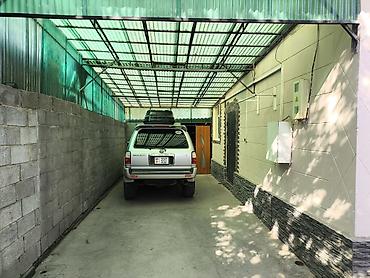 - крытая парковка/гаражный проезд на один,два автомобиля (высокий навес, бетонное покрытие);