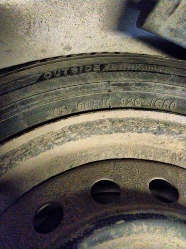 Продается комплект зимних шин с дисками 5 дыр разболтовка 5х100 размер 205/60/16 остаток протектора 80%, район Канта.