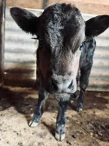 Телёнок (бычок) - Молодой телёнок тёмной масти с белыми отметинами на морде - Ушные бирки установлены - Крепкий костяк, ровные конечности - Компактное телосложение, хорошая мускулатура - Содержитс...