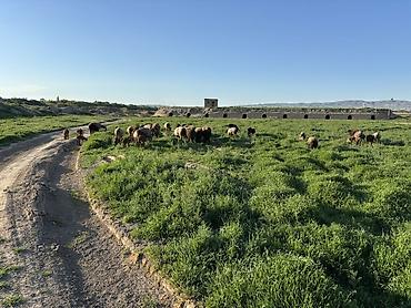 - Инфраструктура поблизости: пастбищная территория с подъездом по полевой дороге; рядом капитальное ограждение/загоны с арочными входами для укрытия и ночёвки.