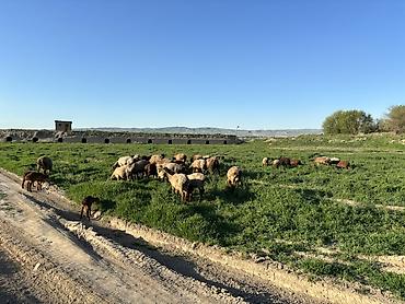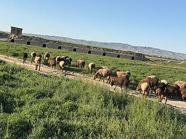- Поголовье: смешанное стадо овец с ягнятами (разные масти: белые, бурые, чёрные).
