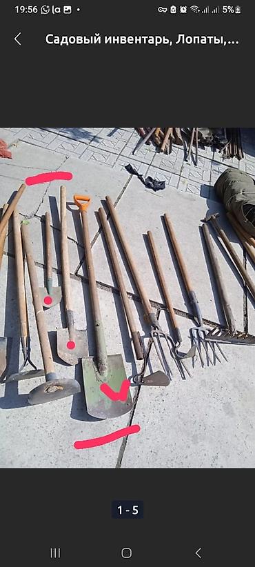 Продаю: 1. Грабли советские б/у цена 200 сом; 2. Лопата штыковая б/у (советские) цена 150 сом (в наличии осталась 1 шт, та, что слева) 3. Шланг армированный, очень долговечный (для полива двор...