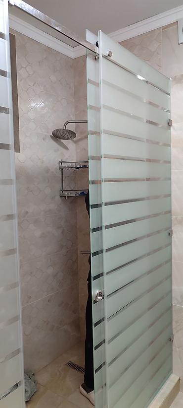 - Конструкция: три стеклянные панели на верхней направляющей; центральная створка с круглой ручкой плавно скользит по роликам. Нижняя часть фиксируется на порожке/поддоне.