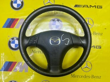 - 3‑спицевая конструкция, интегрированный модуль SRS Airbag (крышка с логотипом Mazda; подушка безопасности отсутствует)