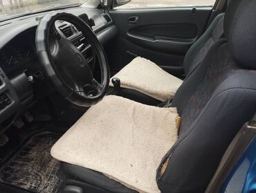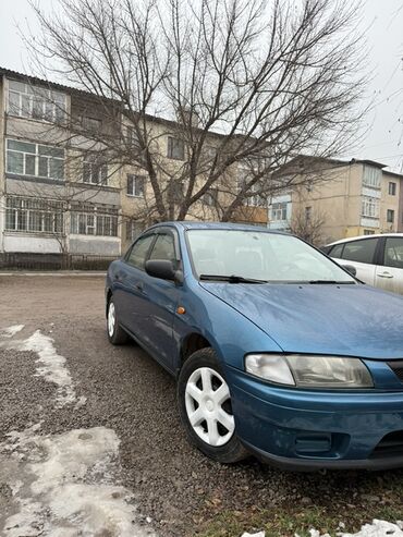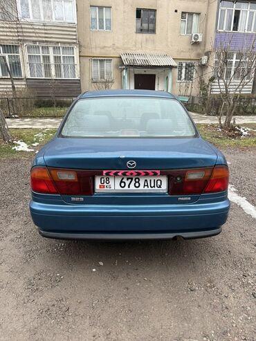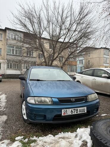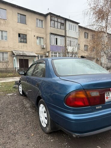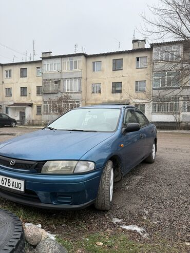 Mazda 323 седан (поколение середины 90‑х), синий металлик.