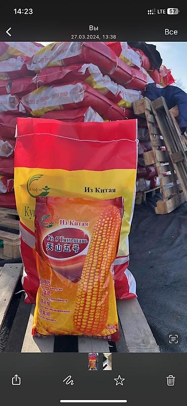 Семена кукурузы, гибридные сорта (импорт из Китая) - Назначение: посевной материал кукурузы. - Тип: гибридные сорта, в т.ч. «№5 Тяньшань». - Упаковка: мешки по 25 кг; также фасовка 5 кг (пакет «№5...