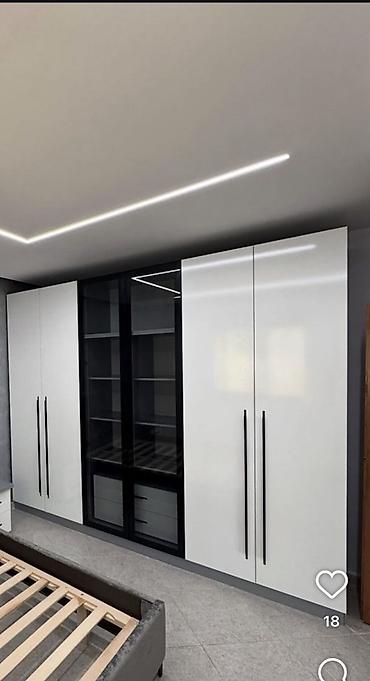 - Габариты (по фото ориентировочно): высота под потолок стандартной квартиры, ширина модуля ~2,2–2,6 м, глубина шкафов стандартная.