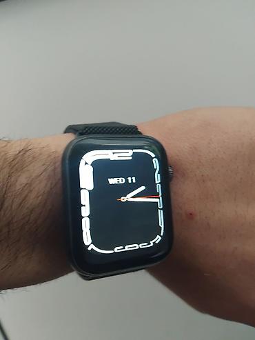 - Экран: прямоугольный сенсорный дисплей с тонкими рамками, циферблаты с аналоговыми/цифровыми стрелками.