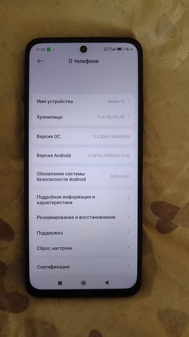 - Android: версия 15 (AP3A.240905.015.A2) с обновлением безопасности от 2025‑10‑01 на экране «О телефоне».