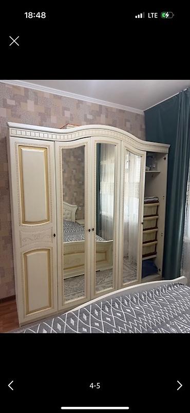 Спальный гарнитур в классическом стиле, цвет слоновая кость с золотистым декором.