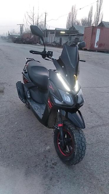 - Современный городской/полугородской скутер в черном цвете с агрессивным дизайном пластика.