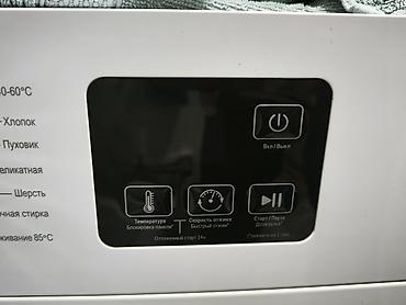 - Управление: поворотный селектор программ + сенсорная панель (вкл/выкл, выбор температуры, скорость отжима/«Быстрый отжим», старт/пауза, функция «Дозагрузка», блокировка панели, отложенный старт 24 ч)