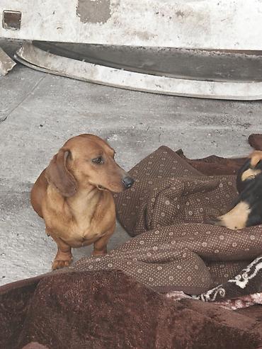 Окрас: рыжий (есть фото рядом с чёрно-подпалой таксой для сравнения).