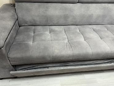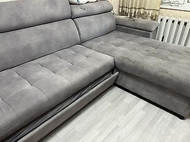 Угловой диван с оттоманкой, темно‑серый почти новый состояние жакшы 23000 сом торг бар +