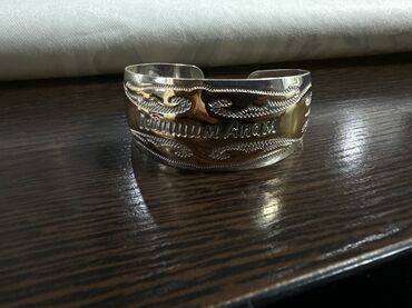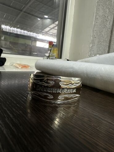 Широкий открытый браслет-манжета из металла с гравировкой (Бейишим Апам)