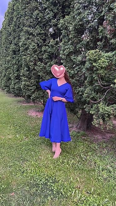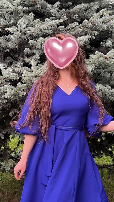 Платье миди насыщенного электрического/королевского синего цвета.