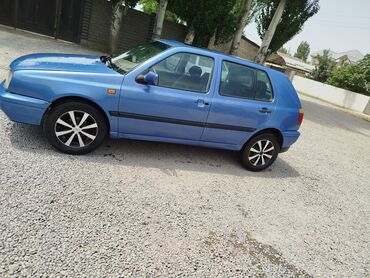 Volkswagen Golf III, 5‑дверный хэтчбек, тёмно‑синий цвет. Киргизские номера (KG). Основные особенности: - Кузов хэтчбек, 5 дверей, компактные габариты - Передний привод - Задние сиденья складываю...