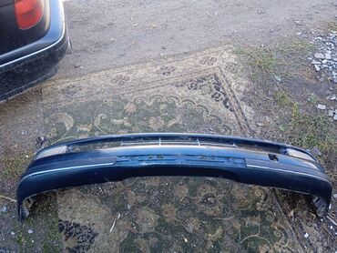 Задний бампер для автомобиля (седан/универсал, классический дизайн 90‑х – начала 2000‑х годов). Цвет — темно-синий/черный. Материал — пластик.