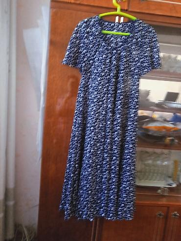 4) Платье в синей гамме с мелким повторяющимся узором: