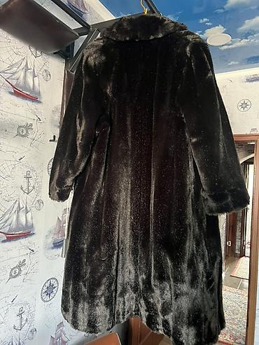 Шуба из искусственного меха, классического черного цвета. - Длина