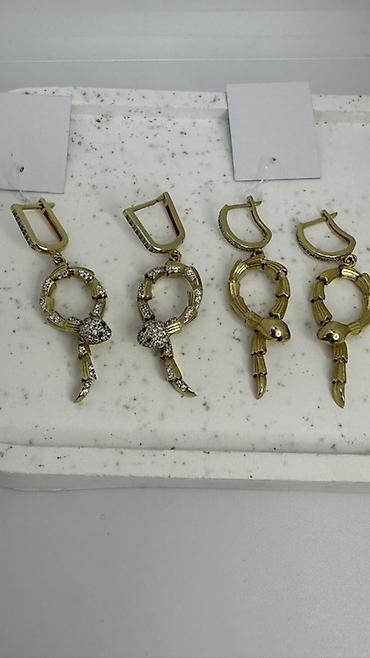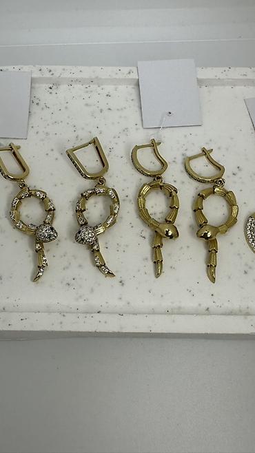 - Серьги-подвески «Змеи»: массивные золотистые серьги с подвесом в форме кольца, оформленного как извивающаяся змея. Две версии: